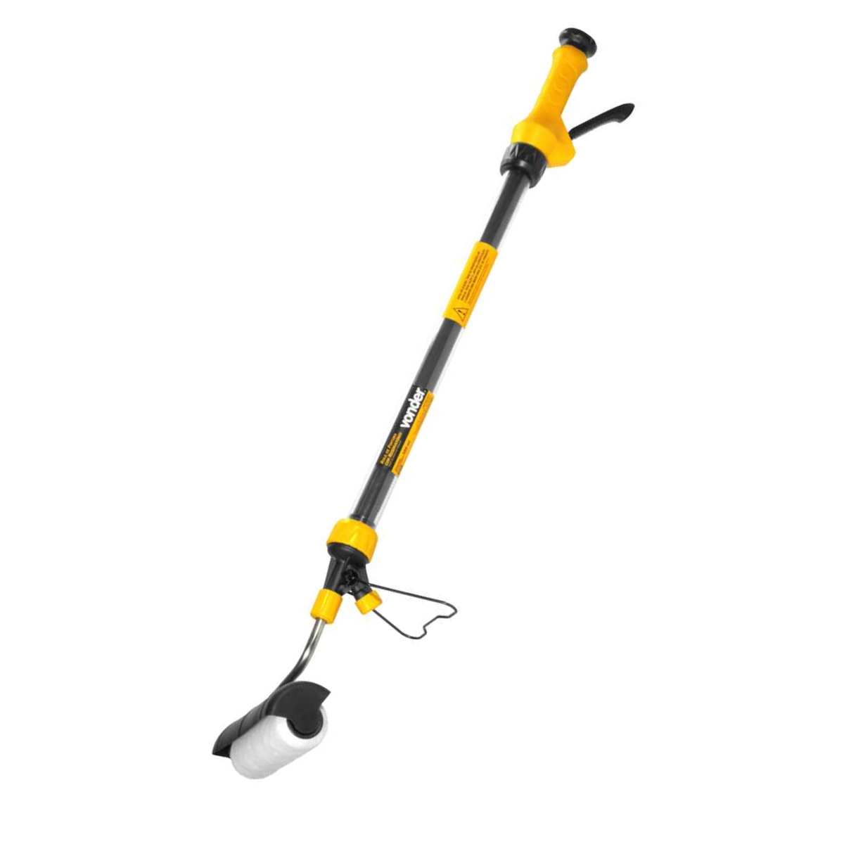 Possui reservatório de tinta que facilita a utilização, pois dispensa mergulhar o rolo na tinta, bastando abastecer o reservatório para que, com alguns cliques no gatilho, o rolo seja preenchido de dentro para fora.